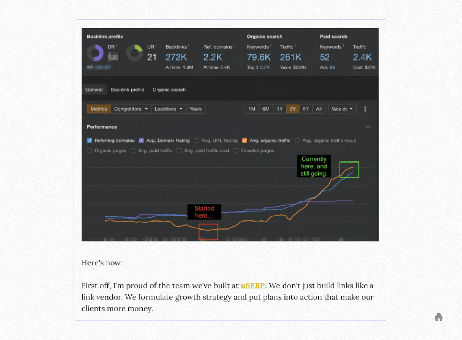 However, running a successful newsletter while managing a thriving agency is no small feat (uSERP is a 50-person SEO agency).