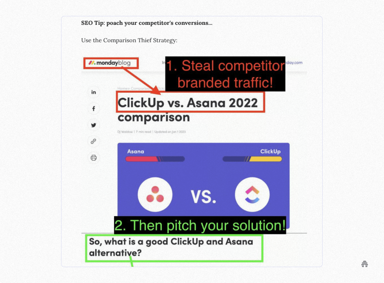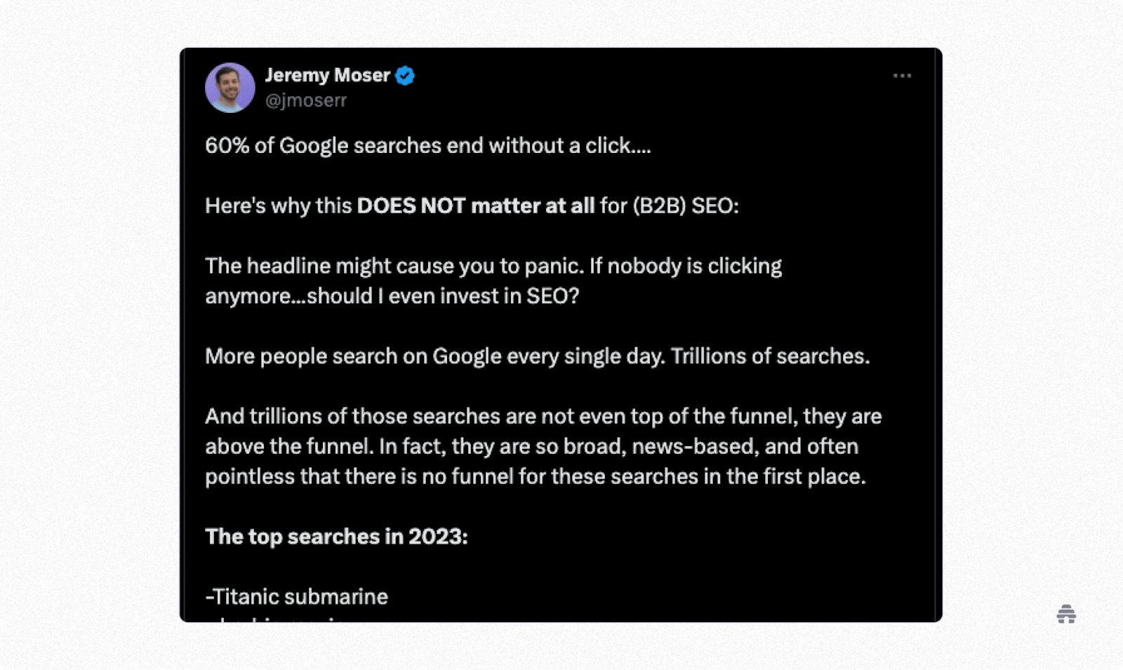 “Then I kept sharing SEO strategy and breakdowns and my top resources of the week in a twice-weekly newsletter,” ended Moser.