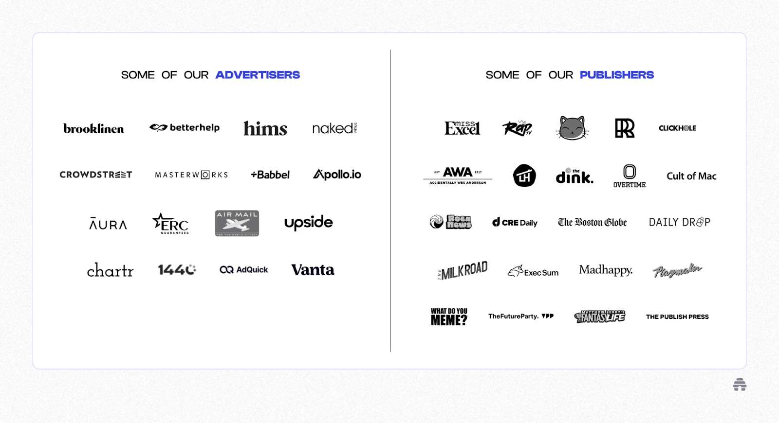 beehiiv Ad Network has helped him achieve this balance, allowing him to handpick advertisers that resonate with his SEO-focused community.