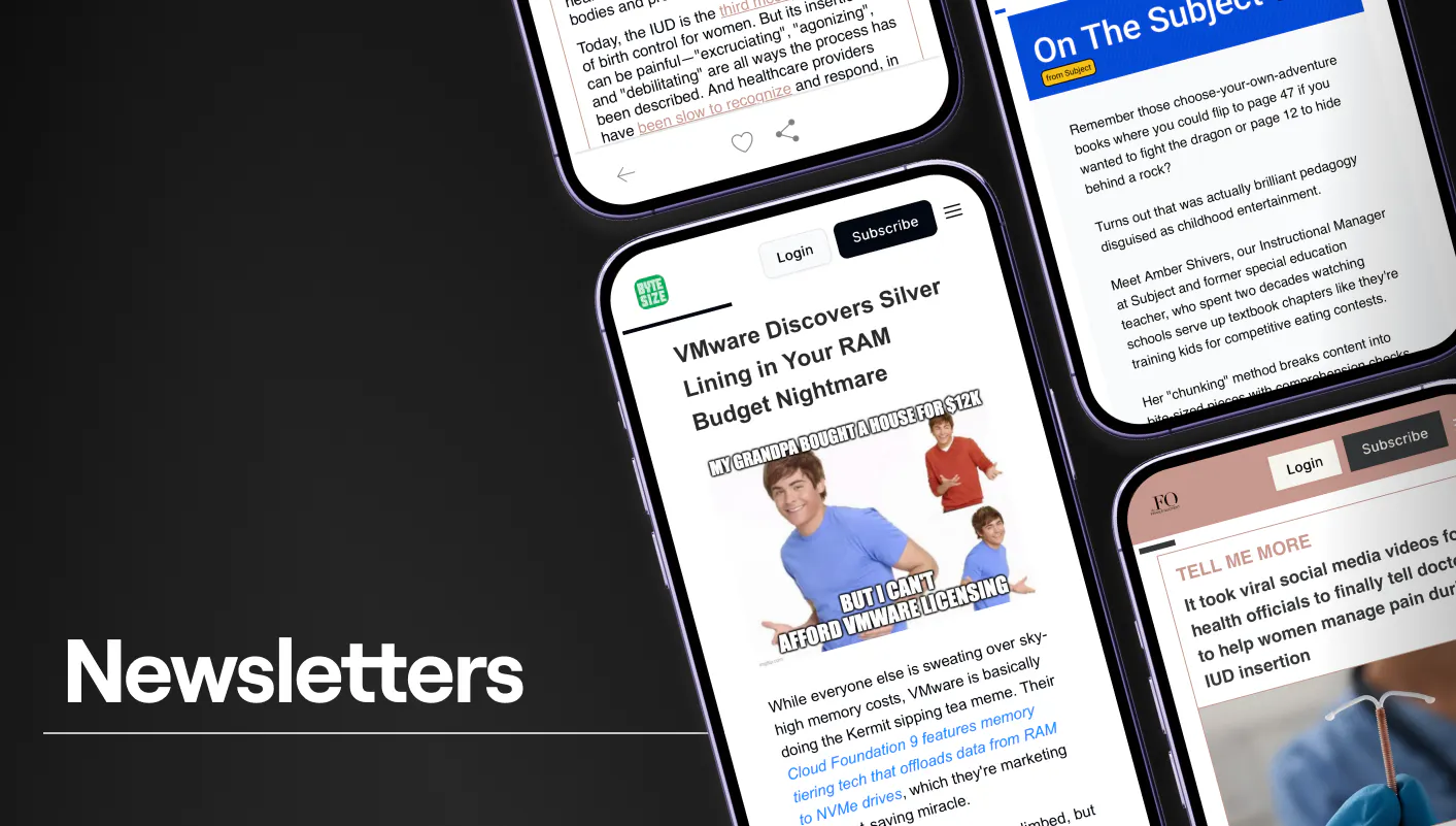 Most B2B newsletters are read once and forgotten. Ours aren't. As the anchor of your editorial program, we build from the ground up: editorial voice, audience growth strategy, social distribution included. The Female Quotient converted a massive social audience to owned. Experts Exchange found its edge and +100K subscribers.
