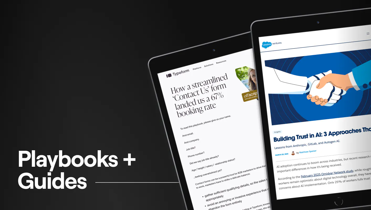 Every SME interview becomes long-form that compounds. AEO and SEO-optimized from day one, anchored to your newsletter, and built to do real work at the bottom of the funnel. Typeform uses it to earn trust mid-evaluation. Salesforce Ventures uses it to build category credibility. Still pulling weight two years from now.