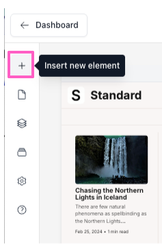 - From the left icons menu of the Website Builder, click on the + Insert new element icon.
