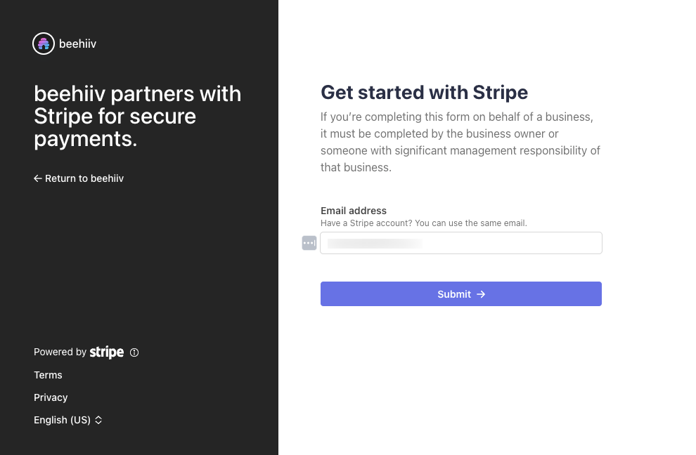 Once you have an active Stripe account, all you have to do is connect your beehiiv account with your Stripe account by following the instructions below.