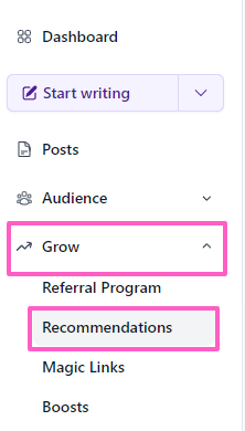 - From the left panel in your account, go to Grow > Recommendations.