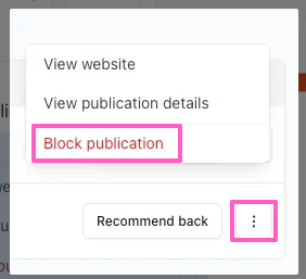 If you see a publication listed in your Recommending you tab and don’t want to be associated, click the 3 dots menu and select Block publication.