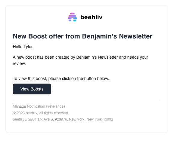 You'll receive an in-app notification and an email when a new offer becomes available in the Boosts marketplace — provided you’ve enabled Boost notifications in your Notification Preferences.