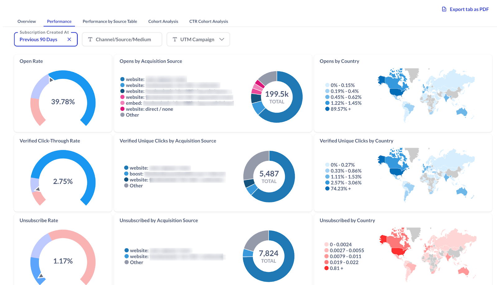 The Performance tab goes into more detail about your new subscribers and their engagement, giving you powerful insight into your acquisition strategy.