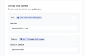 - Back on the Domains page, you may see a badge labeled Entri Verification in Progress while the system completes setup.