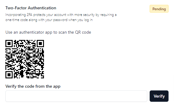 - Enter the numbers generated by the 2FA app into the field of the 'Two-Factor Authentication' section in beehiiv, then click Verify.