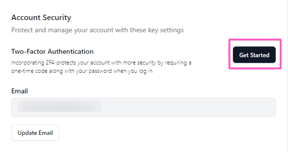 - Under the Two-Factor Authentication section, click Get Started.
