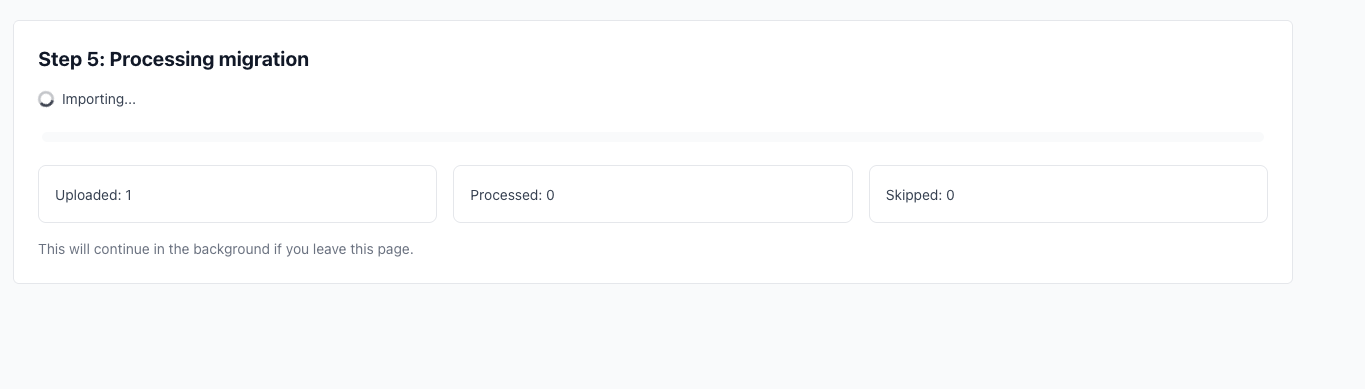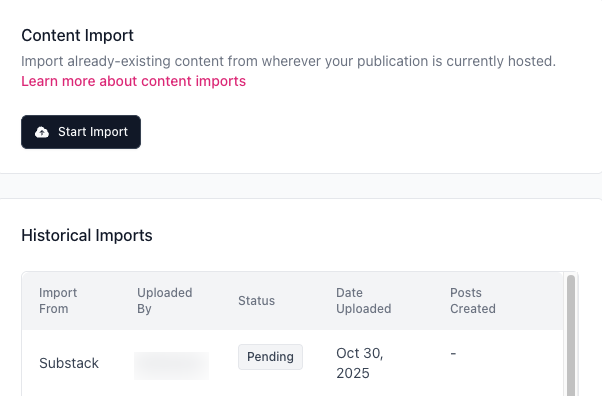 Migration typically takes 5-10 minutes, depending on the number of posts. During this time, you’ll see a Pending or Processing message in the Historical Imports table.