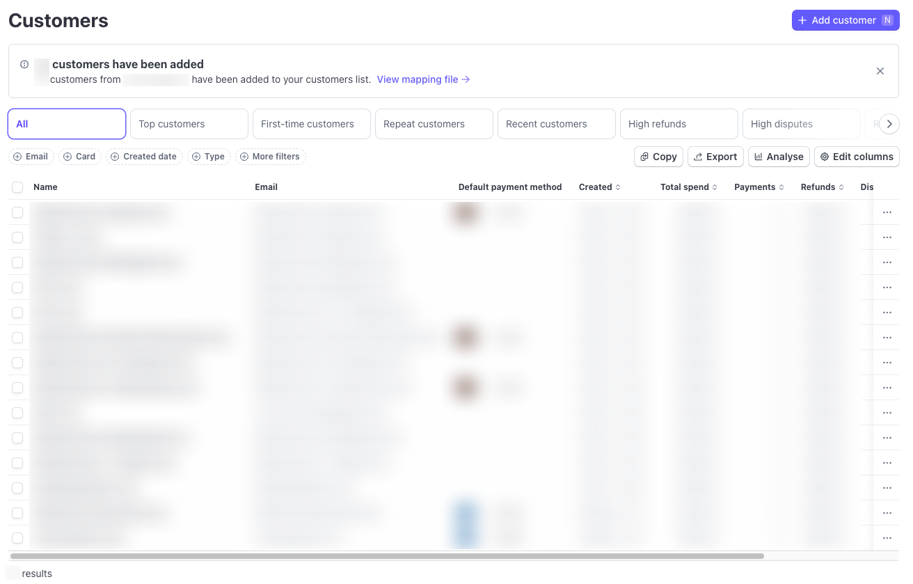 - Once the transfer is complete, refresh your Stripe window to view the migrated customers.