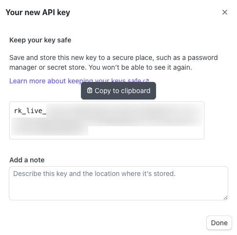 - Complete the verification steps required by Stripe to finalize the API key creation.