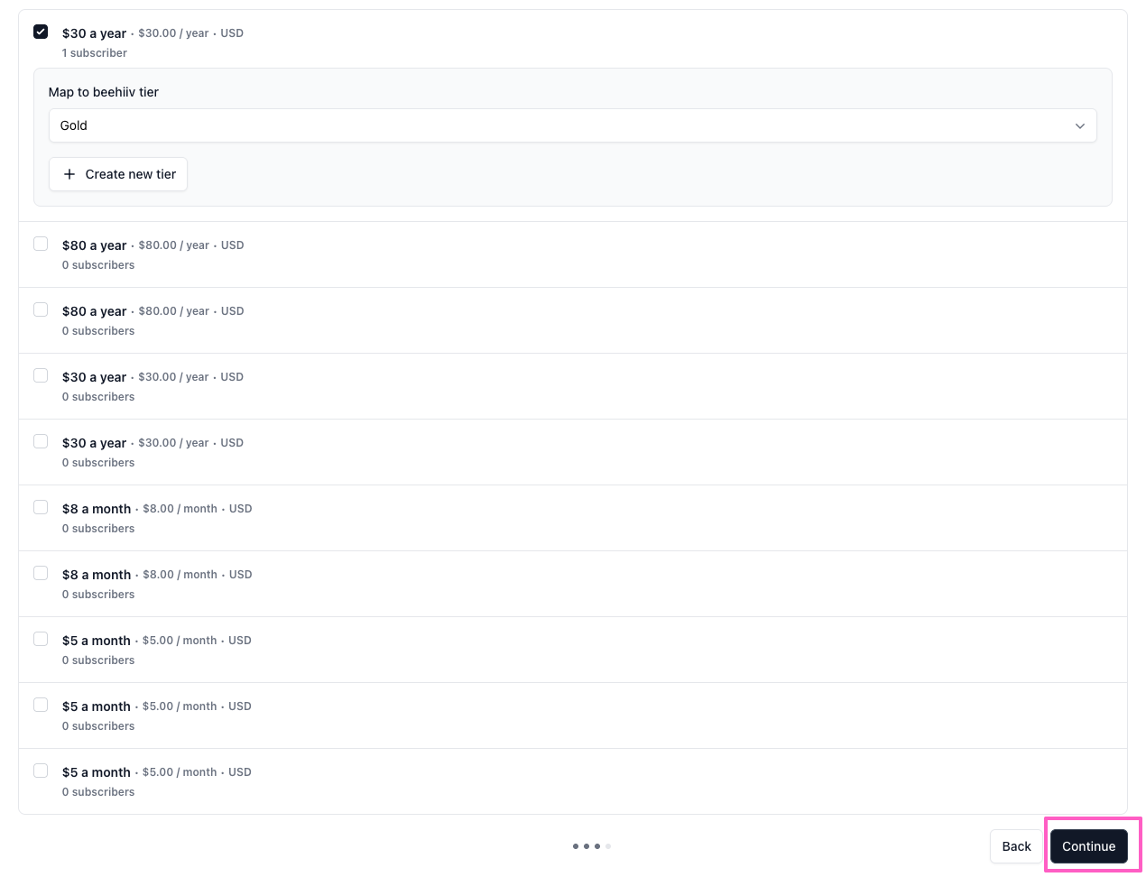 - You can assign them to an existing beehiiv tier using the Map to beehiiv tier dropdown, or