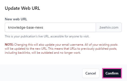 - Web URL changes affect all existing posts and past URLs: When you modify your web URL, all previously published posts are updated to the new URL. This means old links, including backlinks, will no longer work.