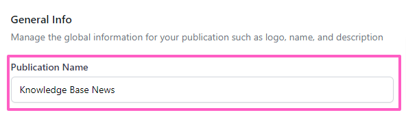- Under Publication Name, enter your desired name. Your changes will save automatically.