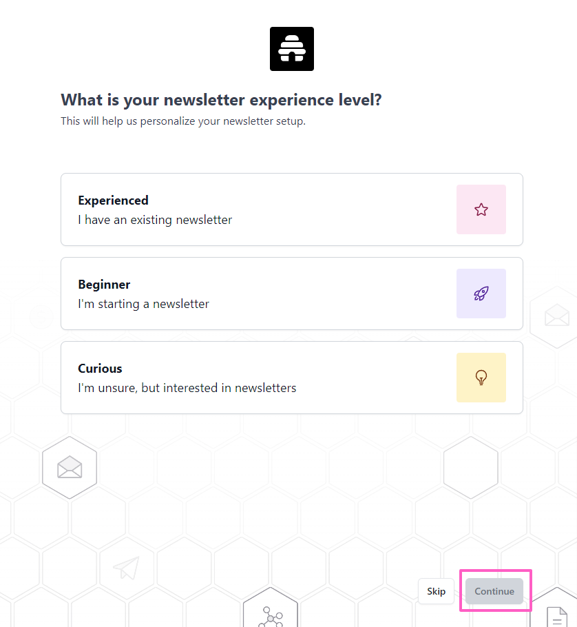 - Your account will be verified. To personalize your newsletter setup, choose from the options: Experienced, Beginner, or Curious. You can also select Skip for a less-guided experience.