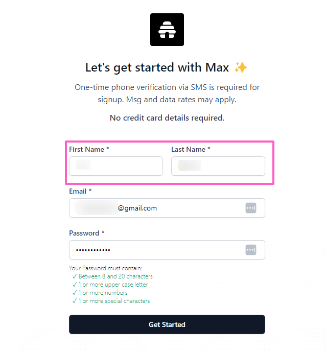 Enter your email address and create a password. Click Get Started.