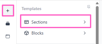 - To begin adding prebuilt sections to your page, click on the + icon at the top of the icons menu. Under Templates, click Sections.