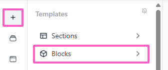 - To begin adding individual blocks to your page, click on the + icon in the left panel. Then, under Templates, select Blocks.