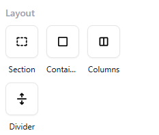 Below the section and block options, you'll find 4 layout blocks to structure your page: