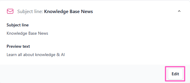 If you are not running an A/B test, you’ll see your email subject line and preview text. Click Edit to make changes.