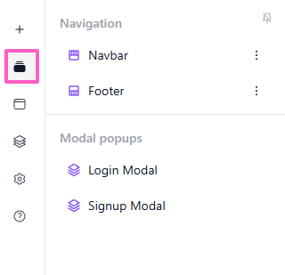 Use this tab to access built-in modals for Login and Signup, which you can link throughout your site. To customize a modal, click to select it and use the design panel on the right to configure when and where it appears.