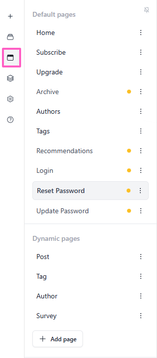 - Subscribe page: A dedicated page for visitors to subscribe to your newsletter, noted by the /subscribe slug in your site URL.
