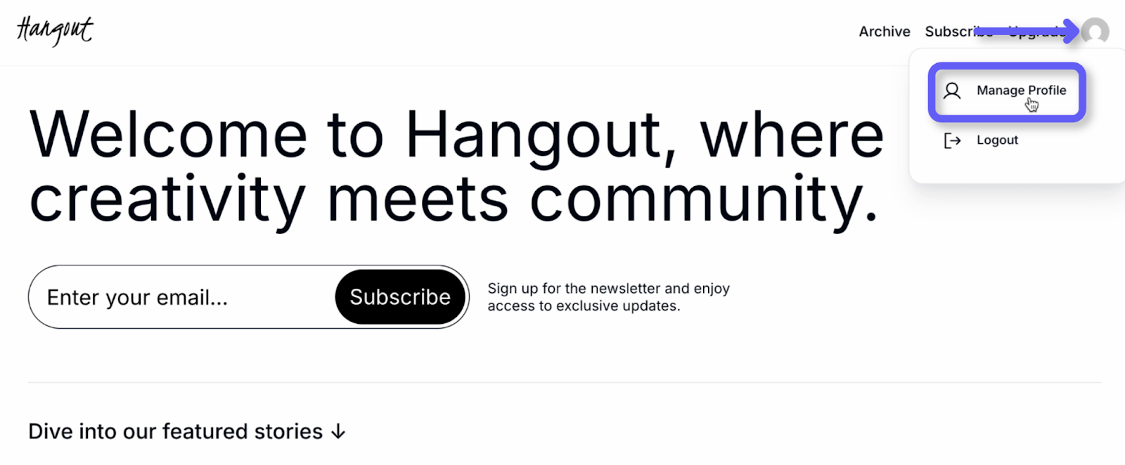 - Hover over your profile icon in the top navbar and select Manage Profile.