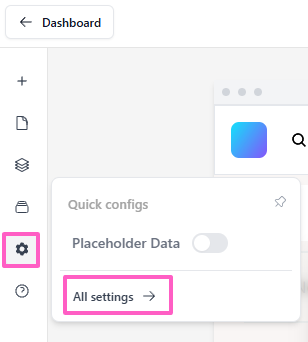 - Open the new Website Builder. From the left panel, click on the Settings icon, then select All settings.