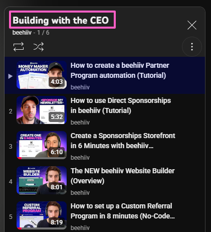 - Once copied from YouTube, go back to your beehiiv account and paste it into the Playlist ID text field.