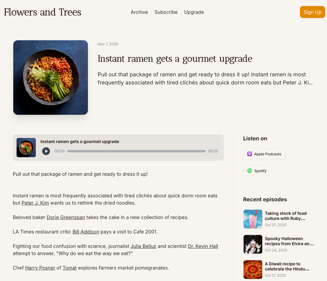 - A Recent Episodes section with links to previous episodes.