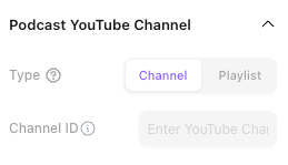 Or, under Podcast YouTube Channel, you can manually add a YouTube channel or playlist to be featured on the page.