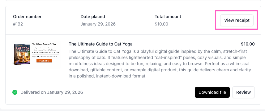 Buyers can also use the View receipt button to view and save a receipt of their purchase for their records.