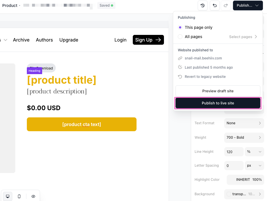 When someone clicks a digital product on your site, it opens a dedicated product page. You can customize the design of these product pages directly in the Website Builder.