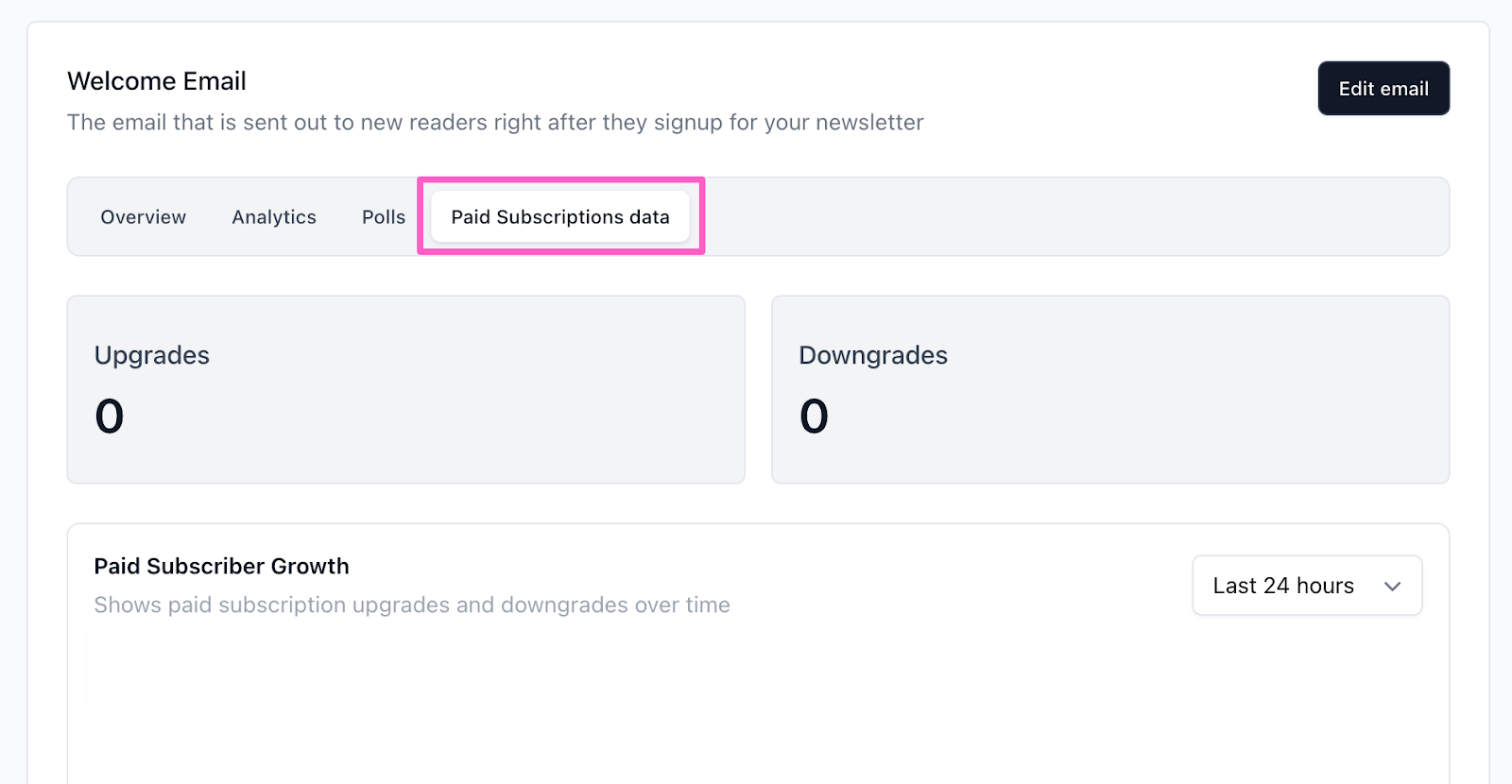 The Paid Subscriptions Data tab offers insights into paid subscriber activity, including: