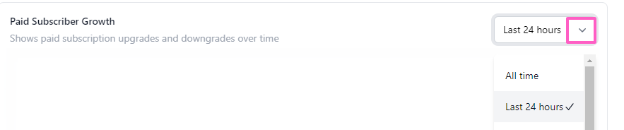 Paid Subscriber Growth: Visualized as a graph showing trends over time. Use the dropdown menu to adjust the time frame for analysis.