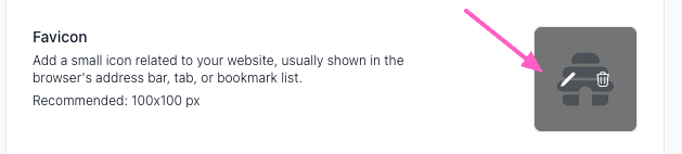 If you’ve already uploaded a logo for your publication, the logo will appear here. If you have not set a logo, you’ll see the beehiiv logo instead. Hover over the logo to select between the Edit icon to upload a new favicon, or the Trash icon to delete your existing favicon.