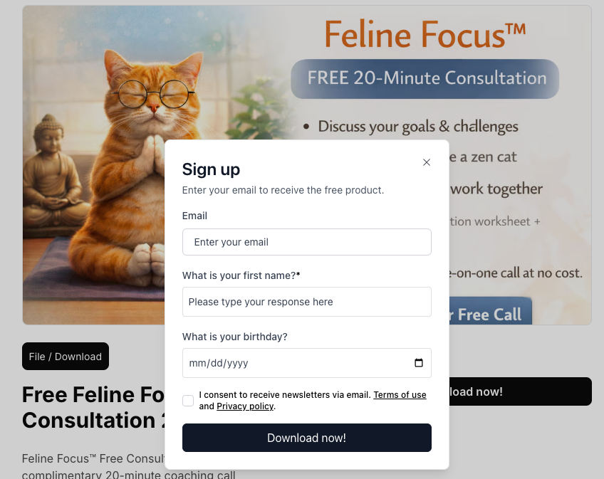 Free digital products make it easy to offer lead magnets and other downloadable resources directly from your publication website. Whether you're sharing guides, templates, files, or consultations, free products allow visitors to access valuable content in exchange for their email address, helping you grow your subscriber list while delivering immediate value.