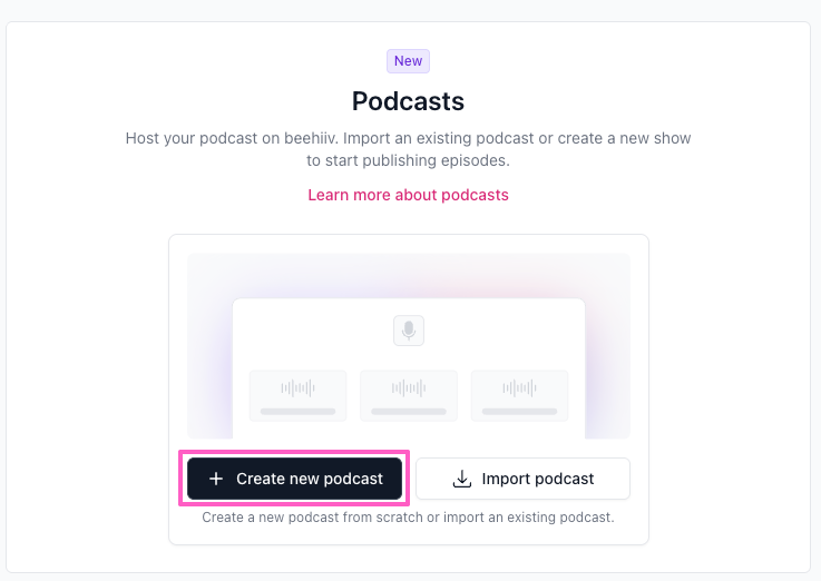Native podcast hosting is built directly into your beehiiv dashboard, giving you everything you need to launch and grow your podcast in one place. You can create shows, upload episodes, generate an RSS feed, and distribute your content to major listening platforms, all on beehiiv.