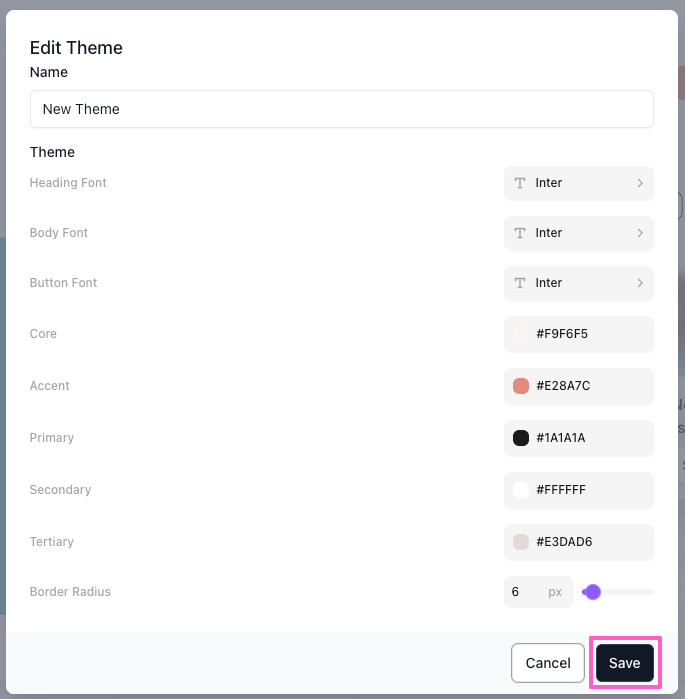 - Border radius: Controls the roundness of corners on buttons, cards, and other elements. Use the slider to adjust.