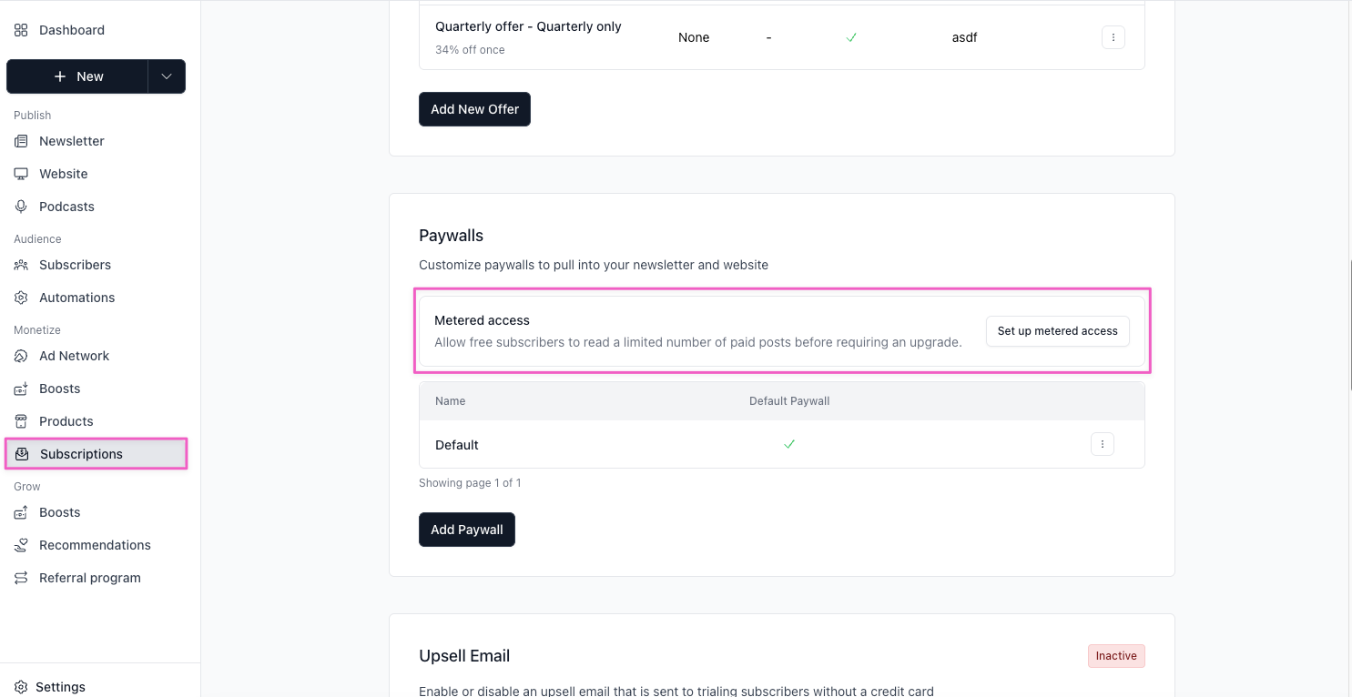 Scroll down to the Paywalls section and locate Metered access.