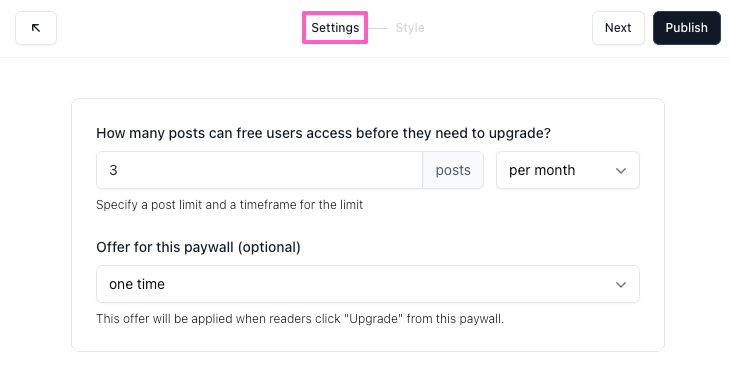 Enter the number of paid posts a free subscriber can access before the paywall appears.