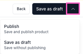 - When you're ready, click the arrow next to Save as draft to save your progress, or click the arrow next to Save as draft and select Publish to make it live.