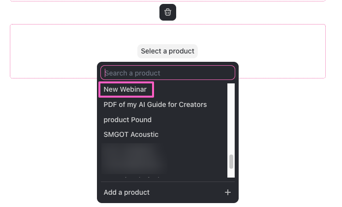 Once live, your webinar has its own page on your beehiiv website. You can easily promote it directly in a newsletter post by typing /product in the editor and selecting your webinar.