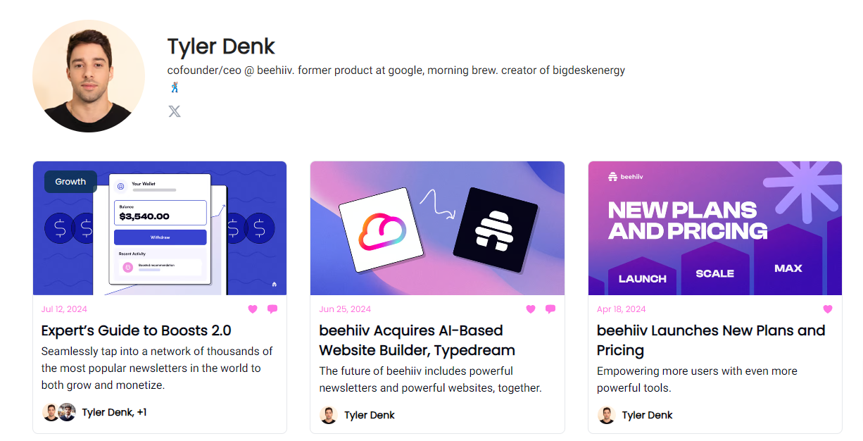 Your beehiiv profile displays your name and photo as the author of your newsletter, providing readers with a clear view of who creates the content they receive.