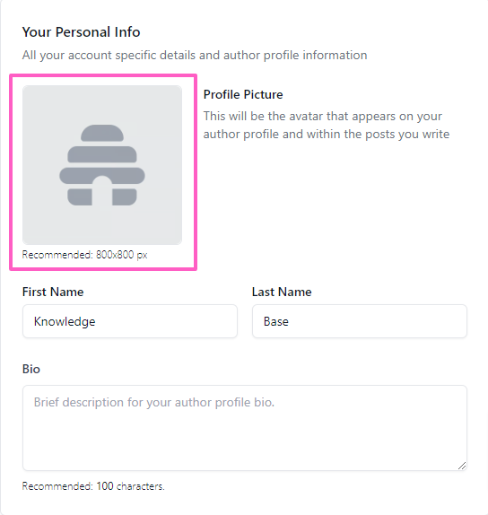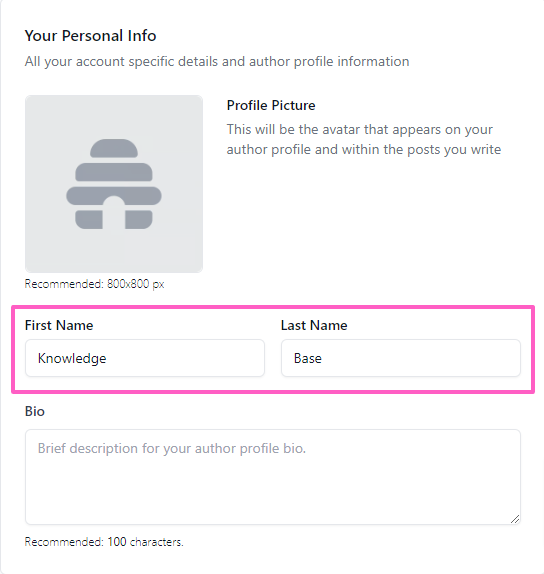 - Your profile is unique to your account. If you are a team member of another publication, your profile settings will also appear there when your name is selected as an author.