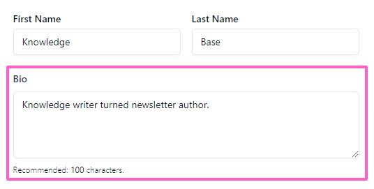 - If you'd like, you can add a bio — a brief description of yourself for your profile. This is a good opportunity to include any credentials or relevant information you'd like to share. Your changes will save automatically, and we recommend that your bio be 100 characters long.
