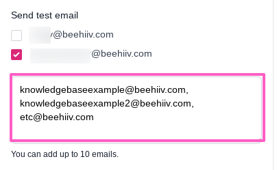 - To send a test email to other recipients, enter up to 10 email addresses, separated by commas.