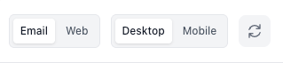 - On the left, you can switch between Email, Web, Desktop, and Mobile views to see how your content appears across different formats and devices. Use the Refresh icon to reload the preview as needed.